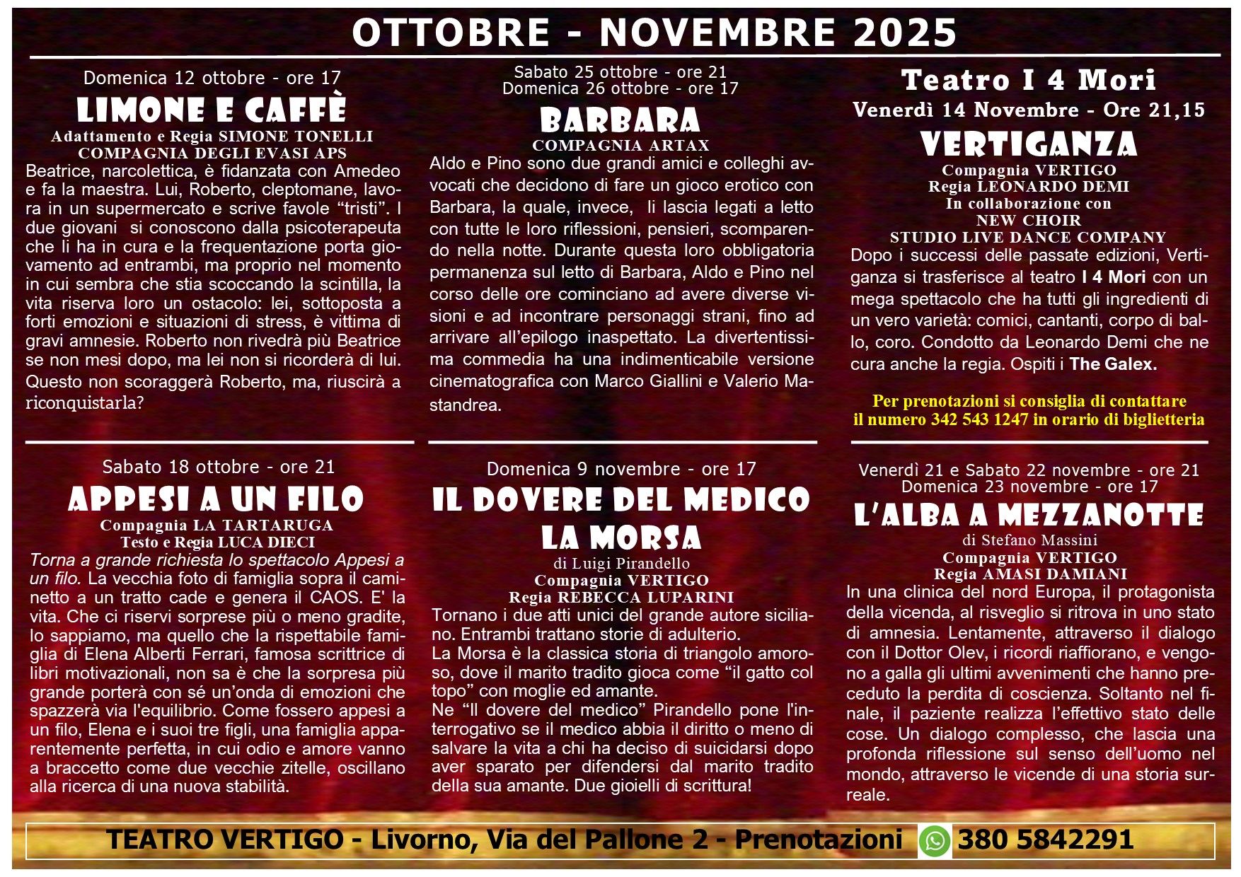 Iscrivendoti, potrai ricevere tramite posta elettronica (e-mail) comunicazioni, inviti, presentazioni dei nuovi spettacoli, news e le principali notizie del Teatro Vertigo di Livorno.